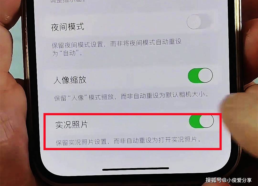 然后咱们接着往下看,下面有一个实况照片的功能,这个开关也要把它打开,大家看看你的有没有打开,没有的话,一定要及时打开它。