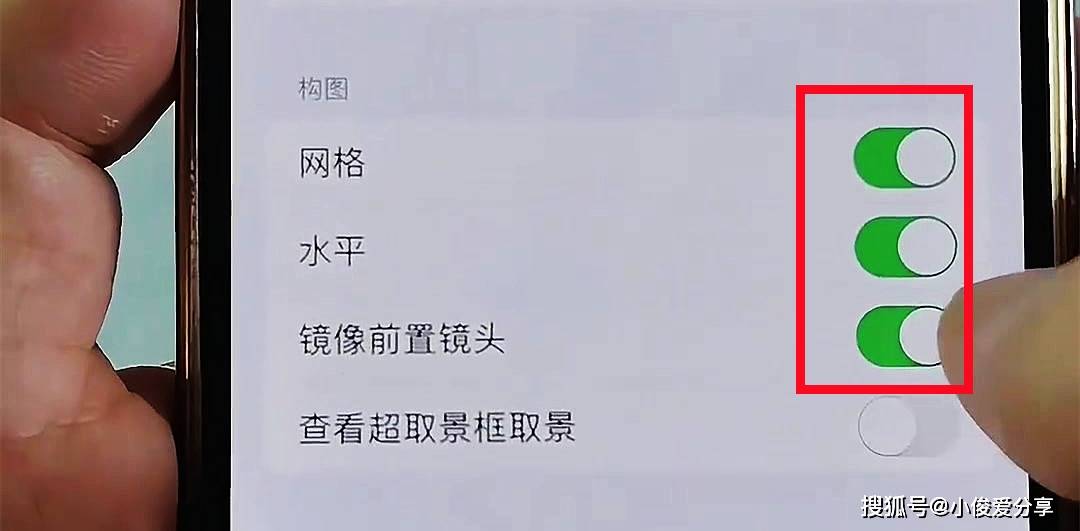返回到相机设置页面,再往下看有一个网格,这个开关也要打开,打开之后,在拍照时,就会显示一个九宫格线,我们拍摄时,就能让画面始终保持居中,从而就不会出现歪歪扭扭,偏左偏右的情况了!