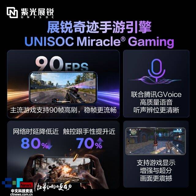 4、搭载UNISOC Miracle® Gaming手游引擎,为玩家提供轻旗舰级游戏体验;