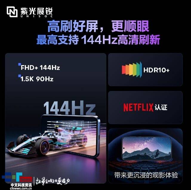 T9300支持FHD+ 144Hz高刷新率,并可适配1.5K 90Hz等多样化屏幕方案,为各类产品提供更灵活的配置空间,配合HDR10+、VRR动态刷新率和VideoPQ动态对比度调节,T9300在应用浏览、视频播放及游戏场景中,呈现更细腻连贯的画面表现,使用户能在更多使用场景中感受到超清、稳定的沉浸视觉体验。