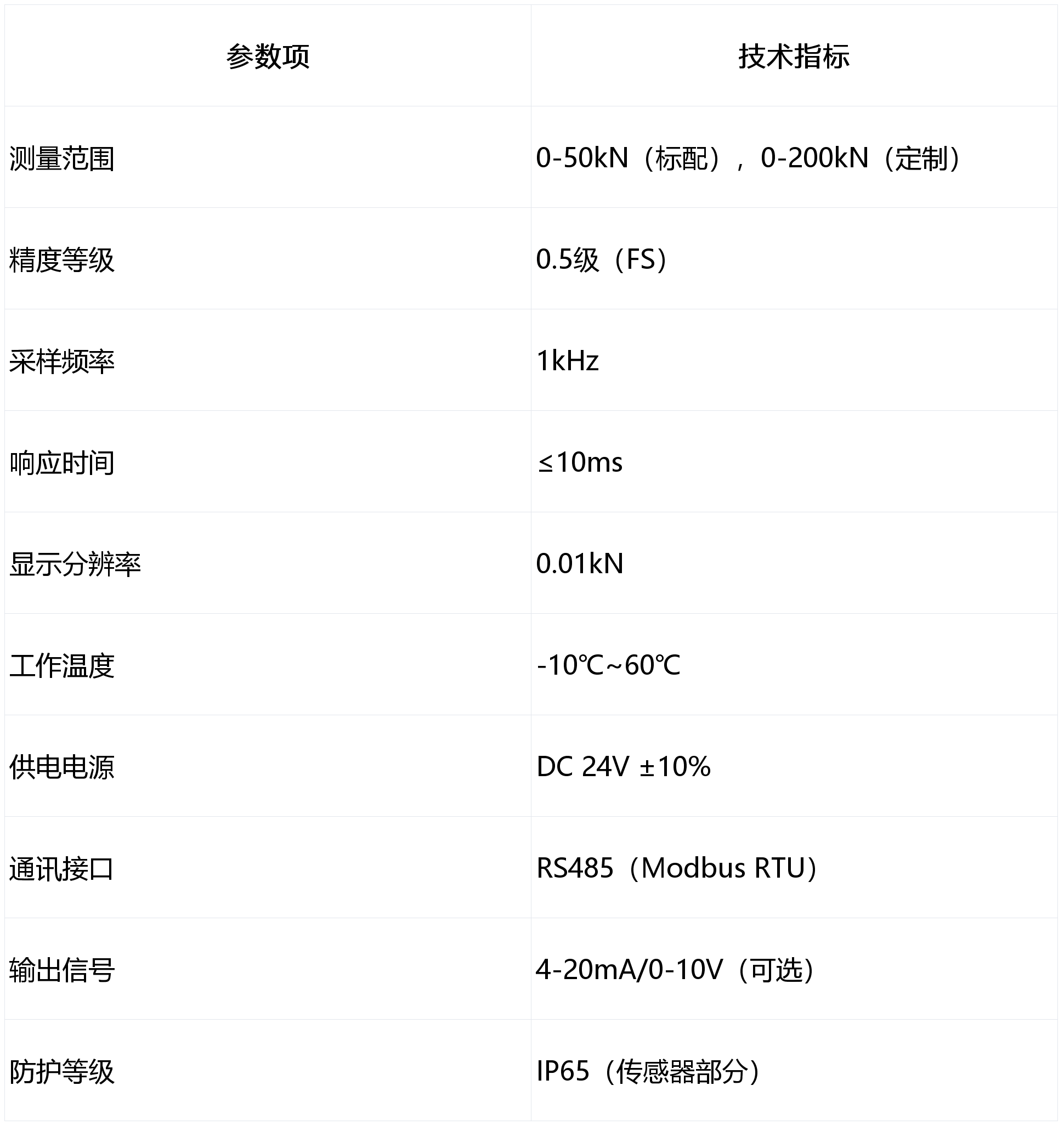 根据焊接工艺需求选择合适的测量范围:低碳钢焊接推荐0-50kN,铝合金等高强度材料焊接推荐0-100kN;自动化生产线建议选择带通讯功能的型号,便于数据追溯与集成;恶劣环境下使用需确认传感器防护等级是否满足现场要求。