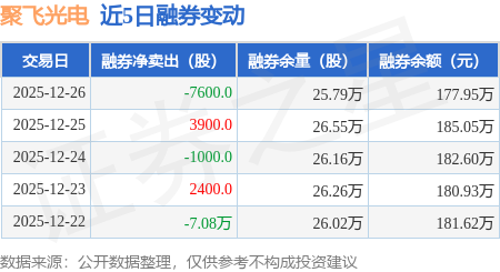 证券之星消息,12月26日,聚飞光电(300303)融资买入3241.55万元,融资偿还3669.76万元,融资净卖出428.21万元,融资余额6.14亿元。