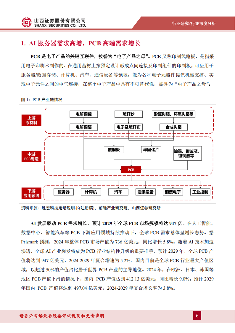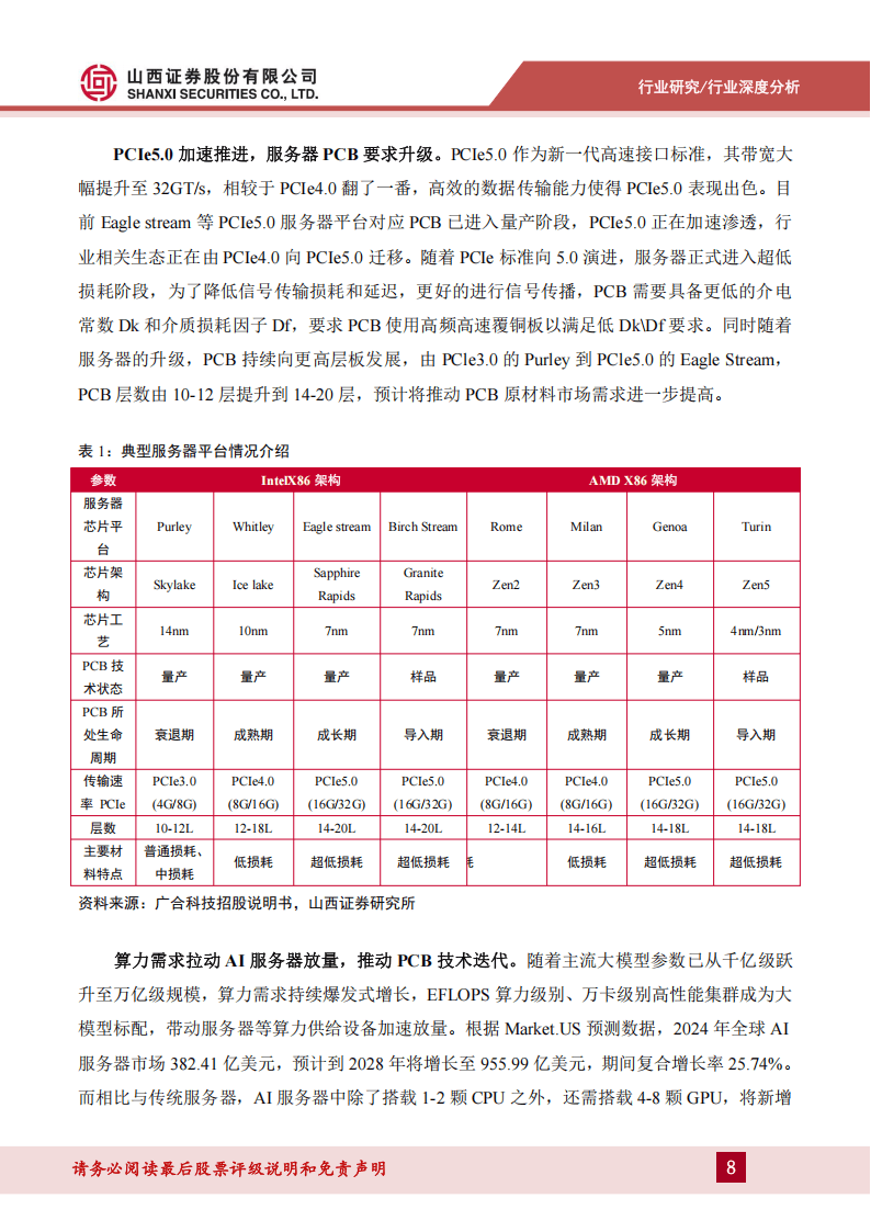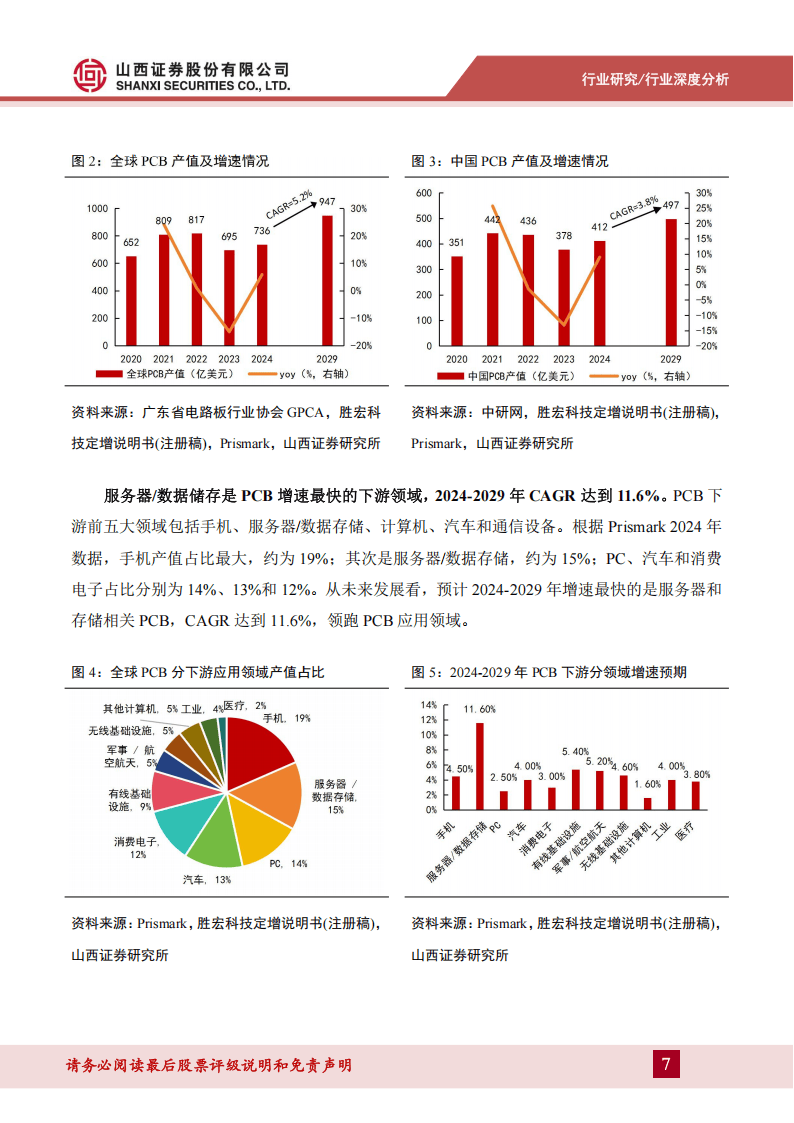 AI服务器的爆发式增长是这场变革的核心引擎。与传统服务器不同,AI服务器需要搭载大量GPU,对数据传输速率、信号完整性和散热提出了近乎苛刻的要求。这使得服务器内部的PCB必须向更高层数、更低信号损耗的方向演进。报告指出,服务器/数据存储已成为PCB下游增长最快的领域,未来几年增速显著领先。随着PCIe 5.0标准普及和800G/1.6T高速交换机成为趋势,PCB对覆铜板的介电性能要求持续提高,直接倒逼上游原材料进行迭代。