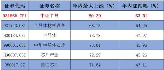 截至12月30日,中证半导2025年年内涨幅63.92%、最大上涨超80%,在中证全指半导体、中华半导体芯片、国证芯片等主流半导体指数中均位列第一。