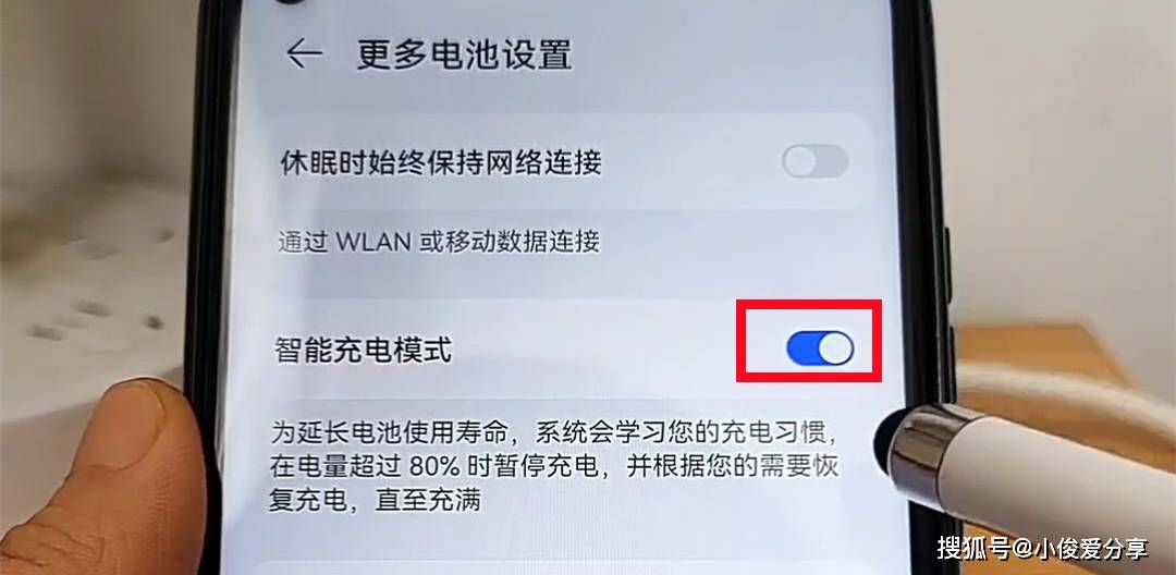 这个时候啊,这里就有一个【智能充电模式】的开关了,咱们一定把这个开关打开!