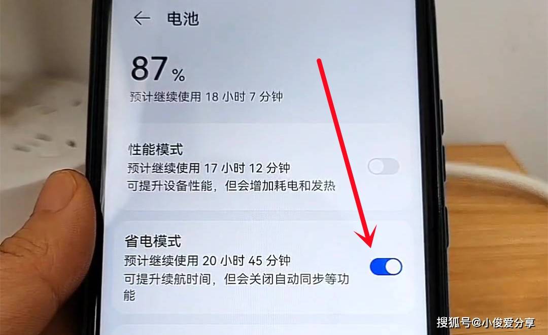 在电池设置里面,你会看到一个省电模式,打开这个开关可以有效节省手机电量!