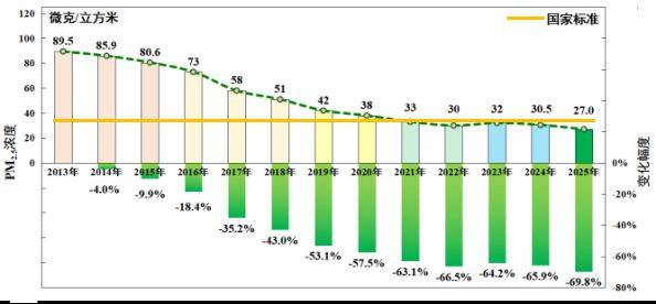 2025年,PM2.5年均浓度首次“破30”,多项指标创有监测以来最优