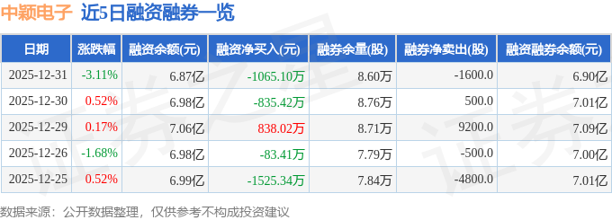 证券之星消息,截至2025年12月31日收盘,中颖电子(300327)报收于28.03元,下跌3.11%,换手率4.35%,成交量14.81万手,成交额4.2亿元。