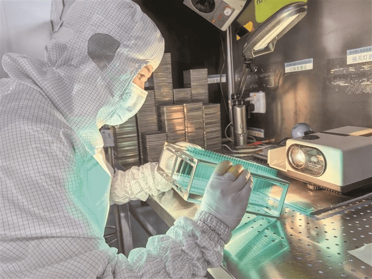 旭晶光电的无尘车间内,技术员在进行产品质量检验。贵州日报天眼新闻记者 尹洁 摄