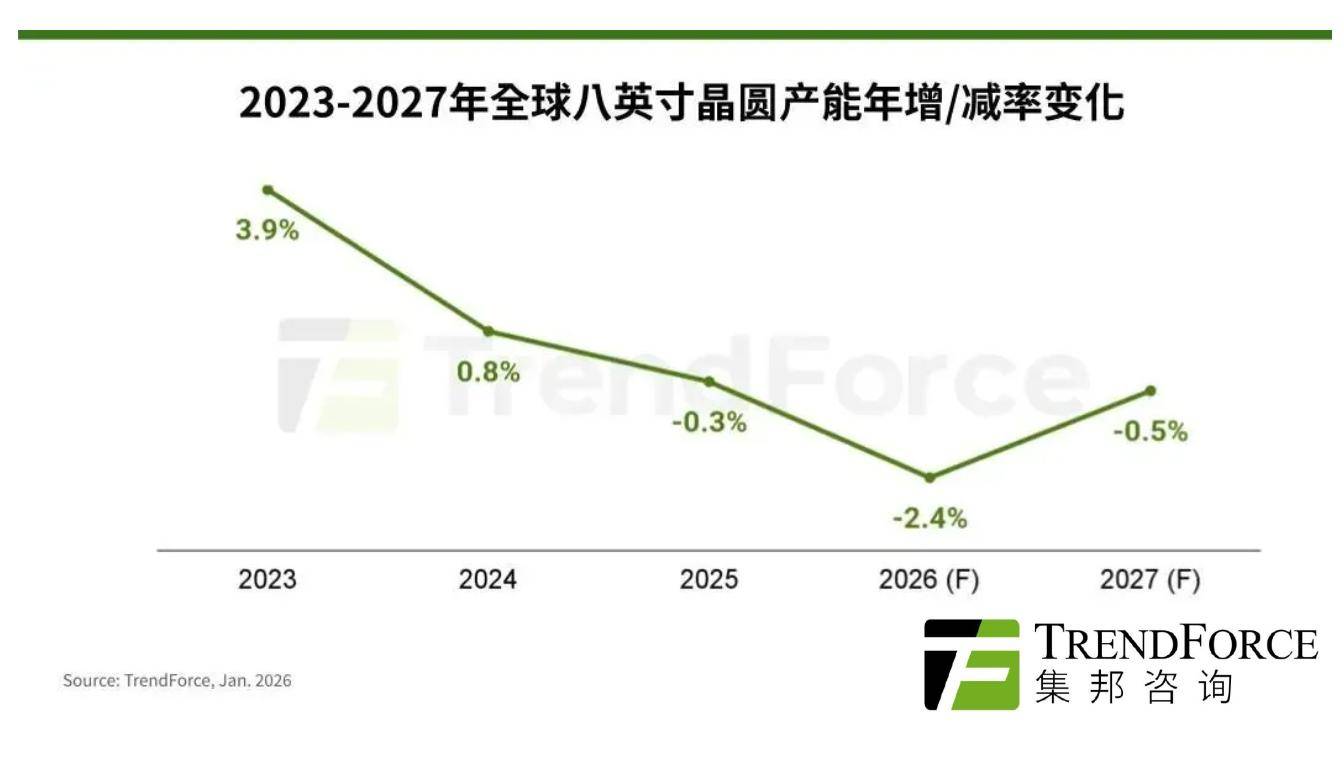 如上图所示,这是集邦咨询的数据,这几年8寸晶圆的产能,其实也没降太多。