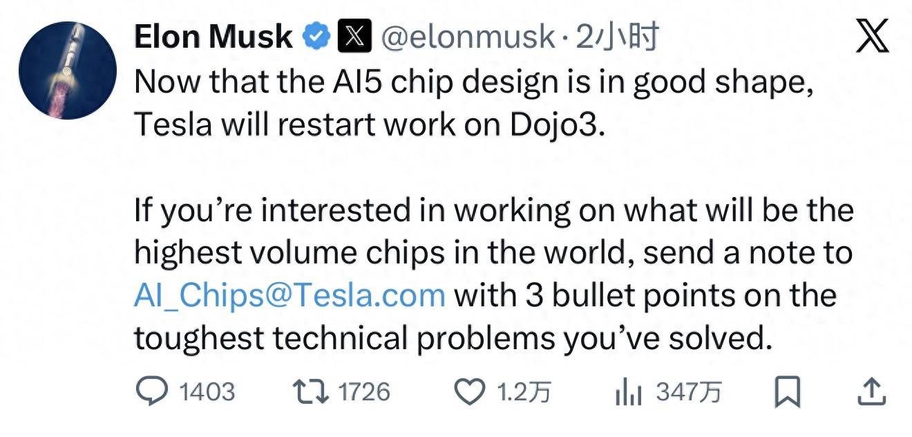 当地时间1月19日,特斯拉CEO埃隆·马斯克在X平台宣布,正式重启新一代超级计算机项目Dojo 3(内部代号AI7)。此次重启并非简单延续,而是基于已趋于成熟的下一代AI5芯片设计,标志着特斯拉自建算力帝国的战略进入全新攻坚阶段。