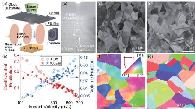 这套设备堪称微观世界的“超速发射器”,能通过激光脉冲将微米级的粒子加速到超音速,再精准轰击金属样本。在此之前,受技术限制,科学界很难精准复刻这种极高应变率的变形过程,这也让极端条件下的金属性能一直存在研究空白。