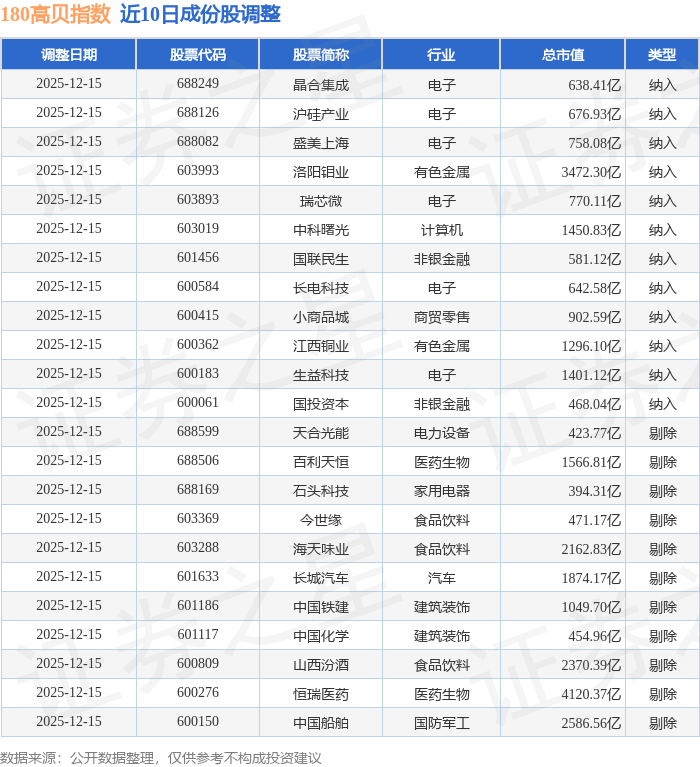 近10日内180高贝(000135)指数成份股做了调整,新纳入了12只股票,剔除了11只股票。