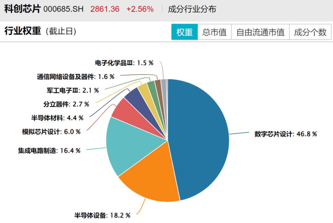 从申万三级行业来看,该指数高度聚焦数字芯片设计、半导体设备、集成电路制造等产业链核心领域,总占比超八成。