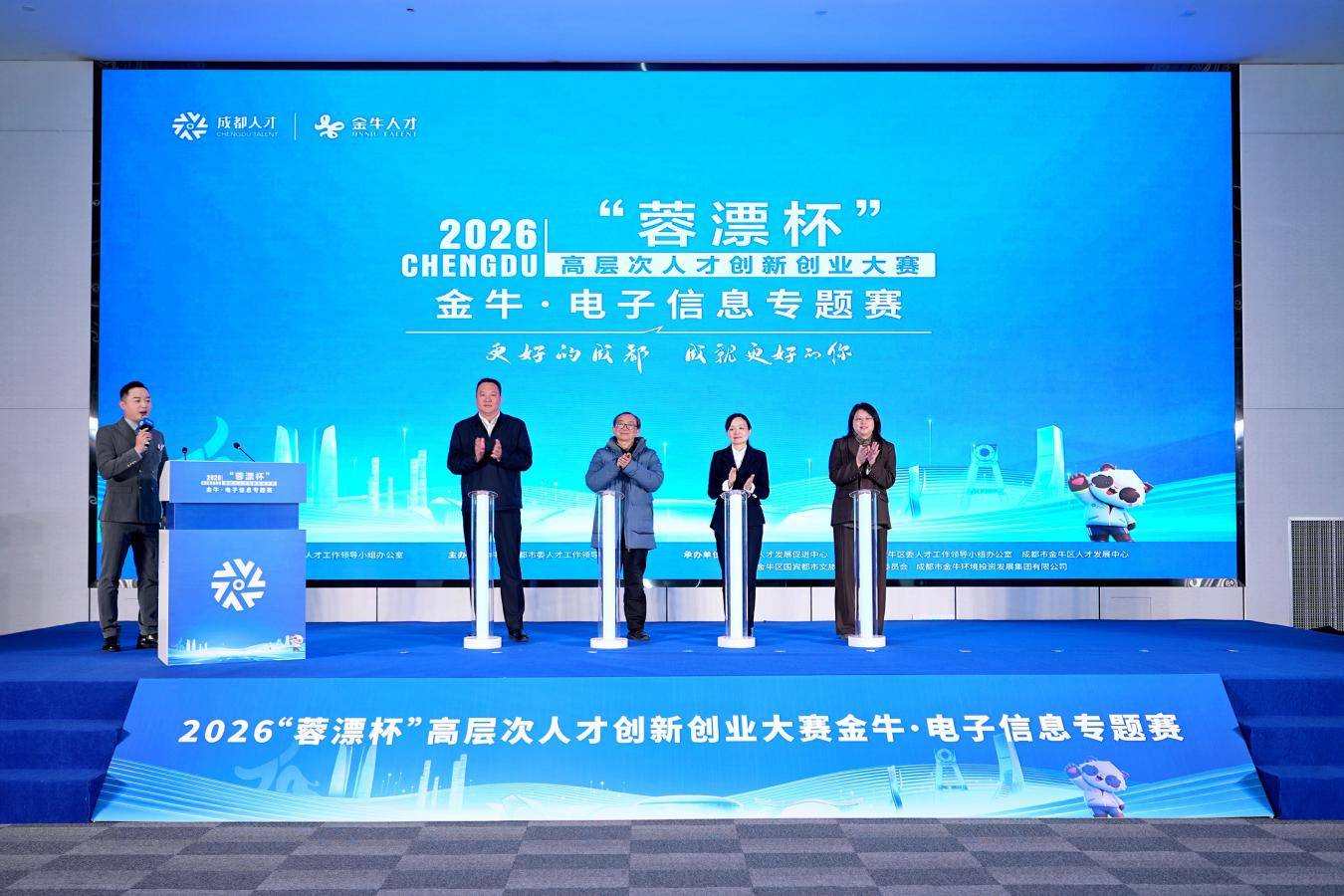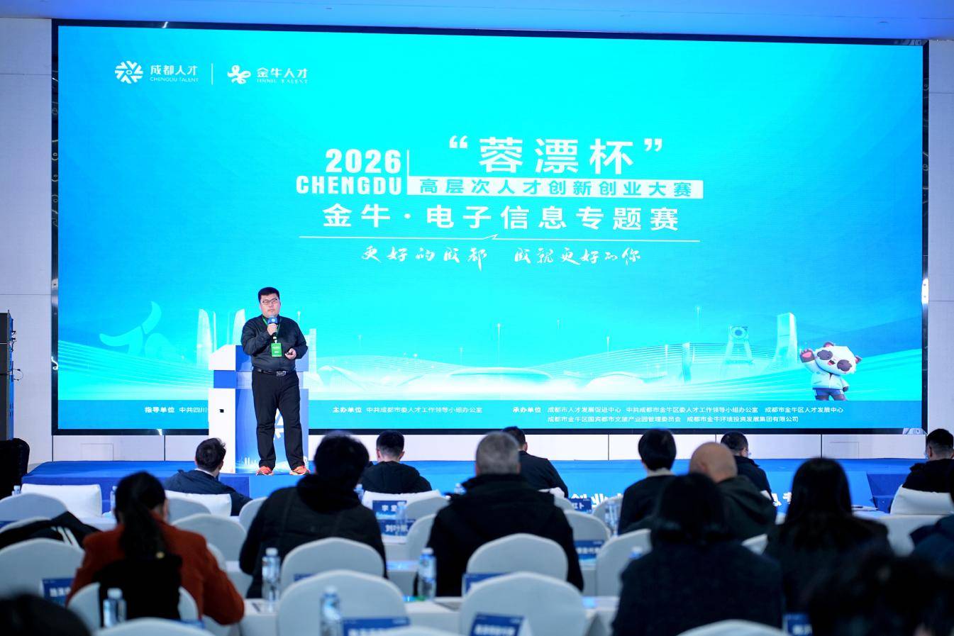 岁新景渐开,蓉城聚英才。1月22日,由四川省委人才工作领导小组办公室指导,成都市委人才工作领导小组办公室主办,成都市人才发展促进中心、成都市金牛区委人才工作领导小组办公室等单位联合承办的2026“蓉漂杯”高层次人才创新创业大赛金牛·电子信息专题赛在AI数字创智元成功举办。武汉大学电气与自动化学院副院长何怡刚,成都市级有关部门及金牛区级有关部门负责同志,重点企业、专家人才、参赛项目、知名投资机构代表等参加活动。