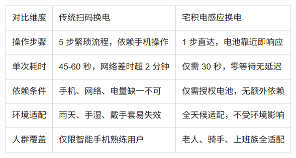 对高频补能的骑手群体,宅积电感应换电节省的不仅是时间,更是实实在在的营收;对社区居民,“无手机也能换” 的便捷性,让全家老少都能轻松使用;对忙碌的上班族,30 秒快速补能,不耽误任何行程。无论你是哪类用户,宅积电都能以贴心的技术设计,满足你的补能需求。