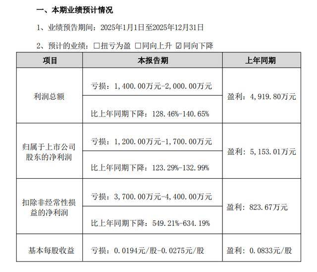 公告称,本次业绩预告数据仅为公司财务部门初步核算结果,未经会计师事务所审计。具体财务数据以公司披露的 2025 年年度报告为准,敬请广大投资者谨慎决策,注意投资风险。