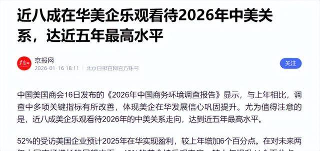 北京日报《近八成在华美企乐观看待2026年中美关系,达近五年最高水平》