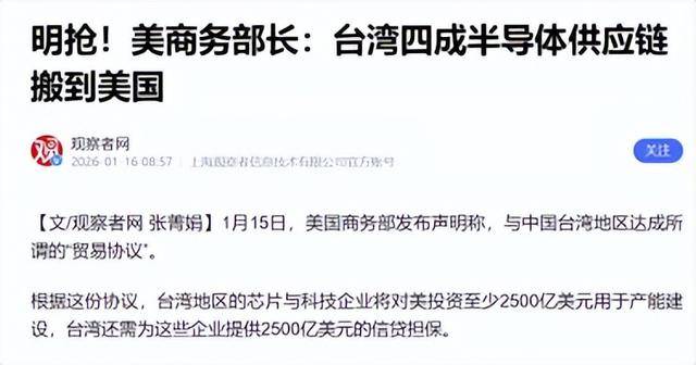 观察者网《明抢!美商务部长:台湾四成半导体供应链搬到美国》