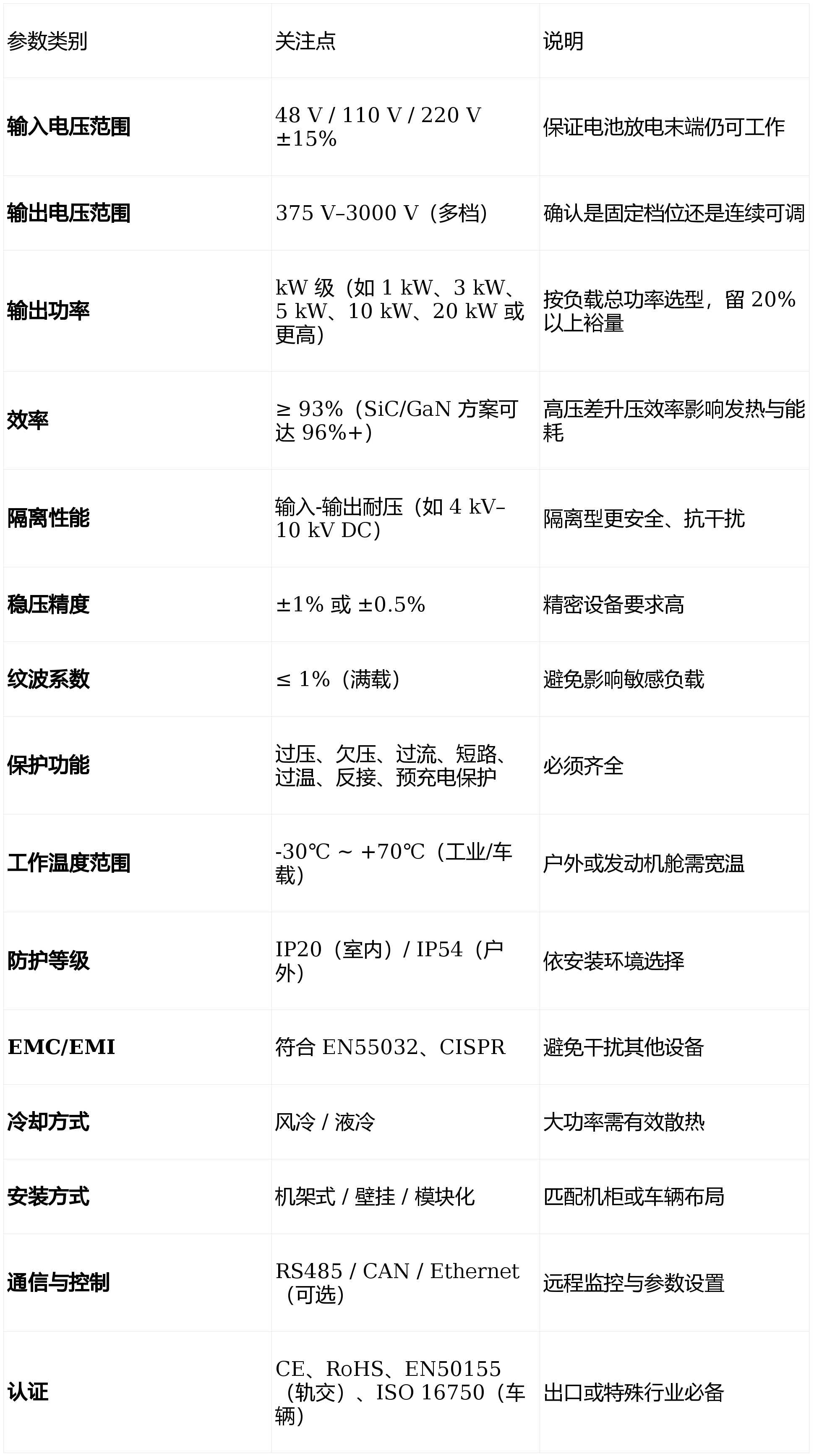- 输出电压:DC 375 V / 540 V / 600 V / 750 V / 800 V / 1000 V / 1500 V / 2000 V / 3000 V(中高压直流,适用于牵引系统、储能母线、测试平台、工业高压负载)