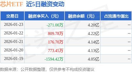 证券之星消息,1月23日,芯片ETF(159995)融资买入8895.41万元,融资偿还9166.41万元,融资净卖出271.0万元,融资余额4.2亿元。