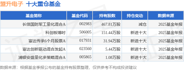 重仓盟升电子的公募基金请见下表: