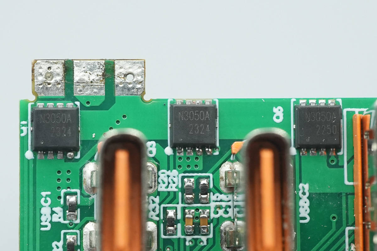 三颗输出VBUS开关管均为丝印N3050A的MOS管,采用DFN3*3封装。