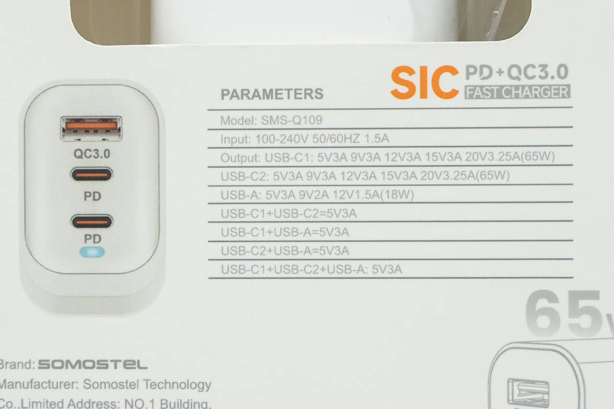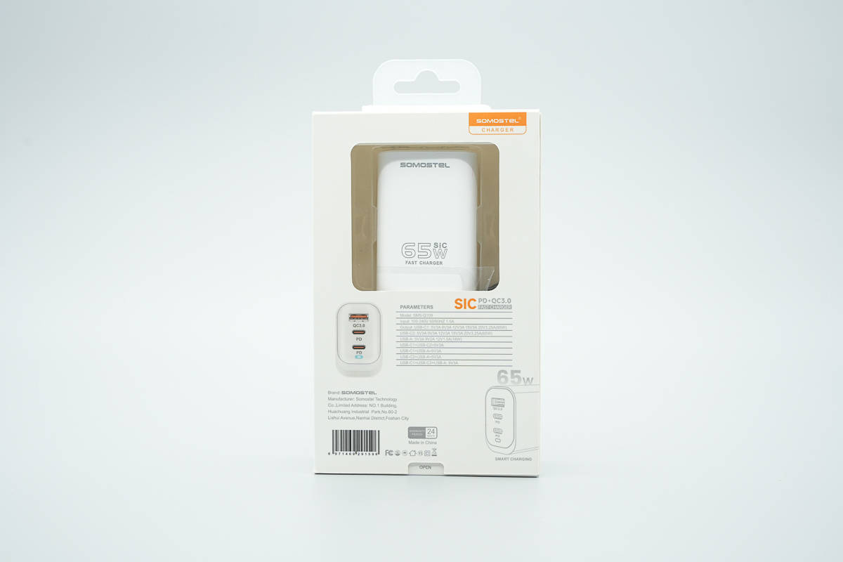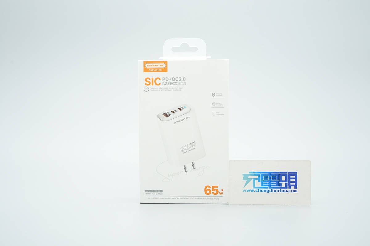最近充电头网拿到了JQX旗下品牌SOMOSTEL的一款65W快充充电器,产品为2C1A接口配置,在完整支持PD、PPS、QC等主流协议的基础上,还支持63W UFCS快充,相比同类产品在兼容性上更为全面。