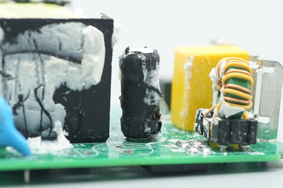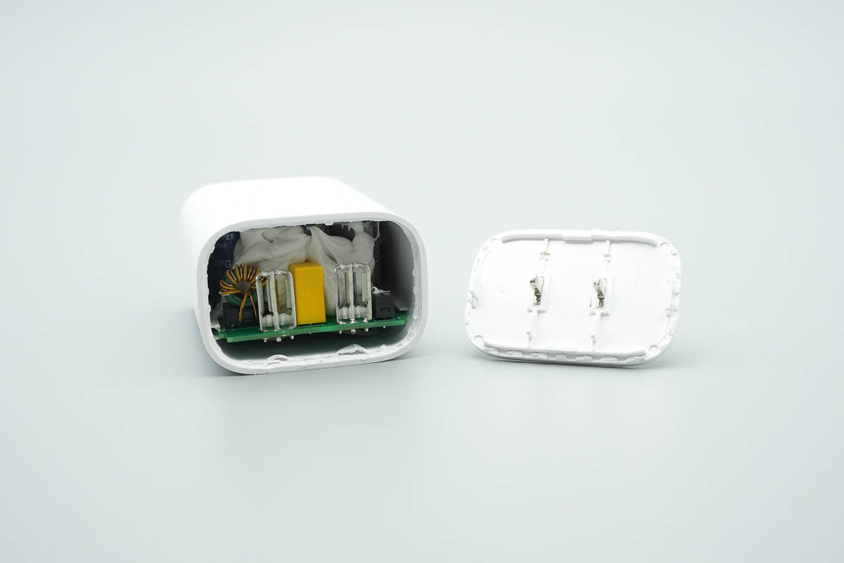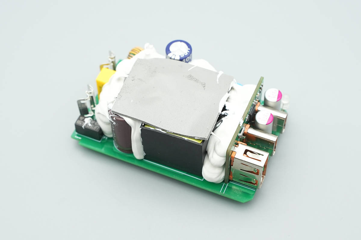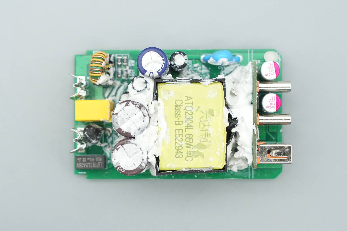 其次充电器选择了一条独特的技术路径:它采用了碳化硅(SiC)方案。作为第三代半导体技术的另一支柱,碳化硅有着优异的耐压和耐热特性。那么产品内部设计与当前主流的氮化镓方案究竟有何异同?让我们通过拆解一探究竟。