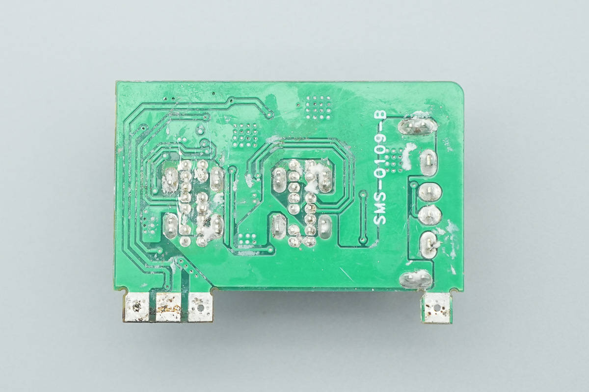 将输入端外壳拆开,充电器采用插脚与模块上金属片接触通电设计。