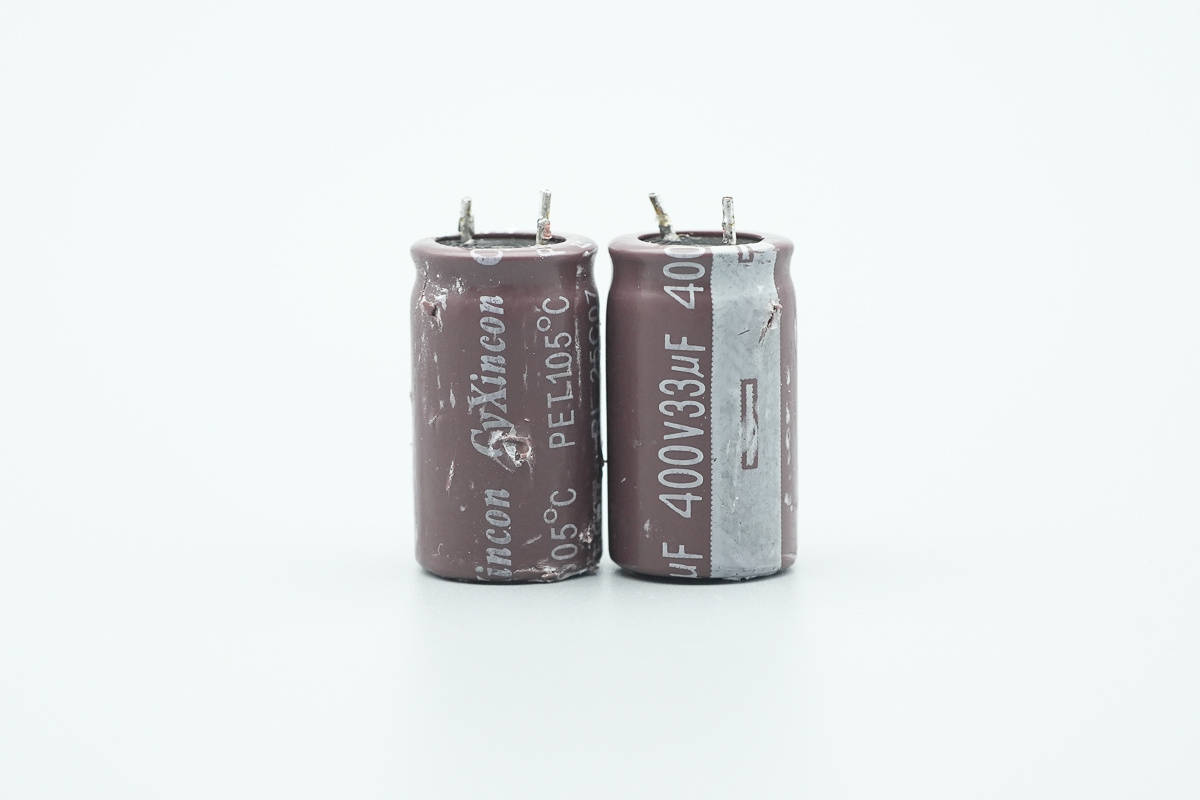 两颗高压滤波电解电容来自CyXincon创宜兴,规格均为400V33μF。