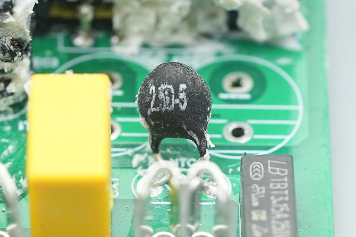 NTC热敏电阻特写,用于抑制上电浪涌电流。