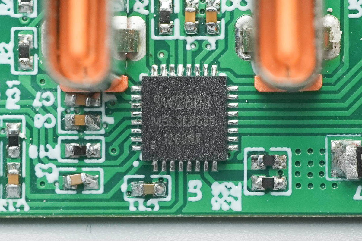 充电头网通过拆解发现,充电器内部采用了智融科技SW1192H+SW1608+SW2603全套碳化硅直驱电源方案,方案集成度高,有效简化了外围电路设计,降低了系统复杂度,同时能够充分发挥了碳化硅器件耐压高、损耗低的优势,为充电器的高效率与高可靠性提供了保障。