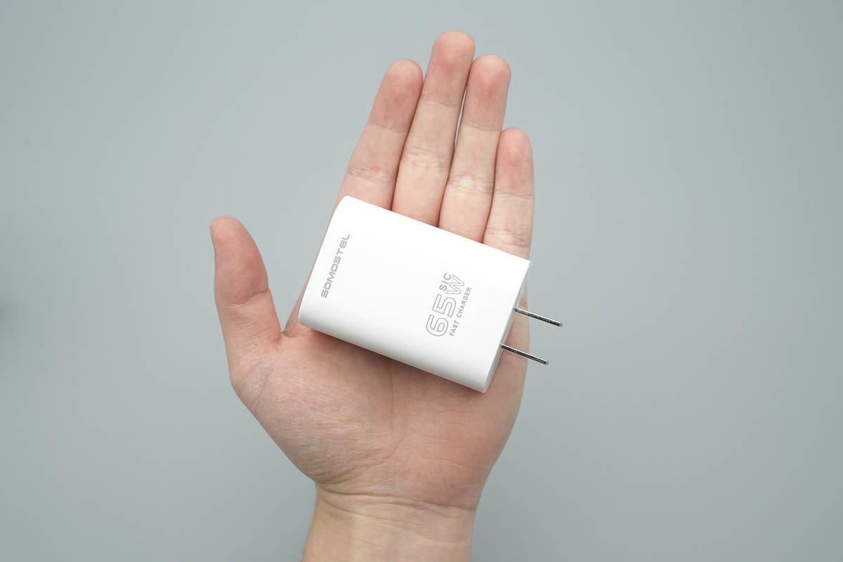 充电器拿在手上的大小直观感受。