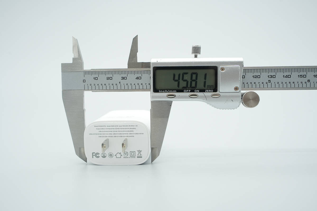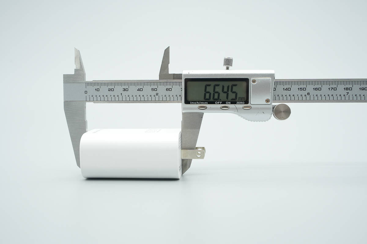 测得充电器机身长度为66.45mm。