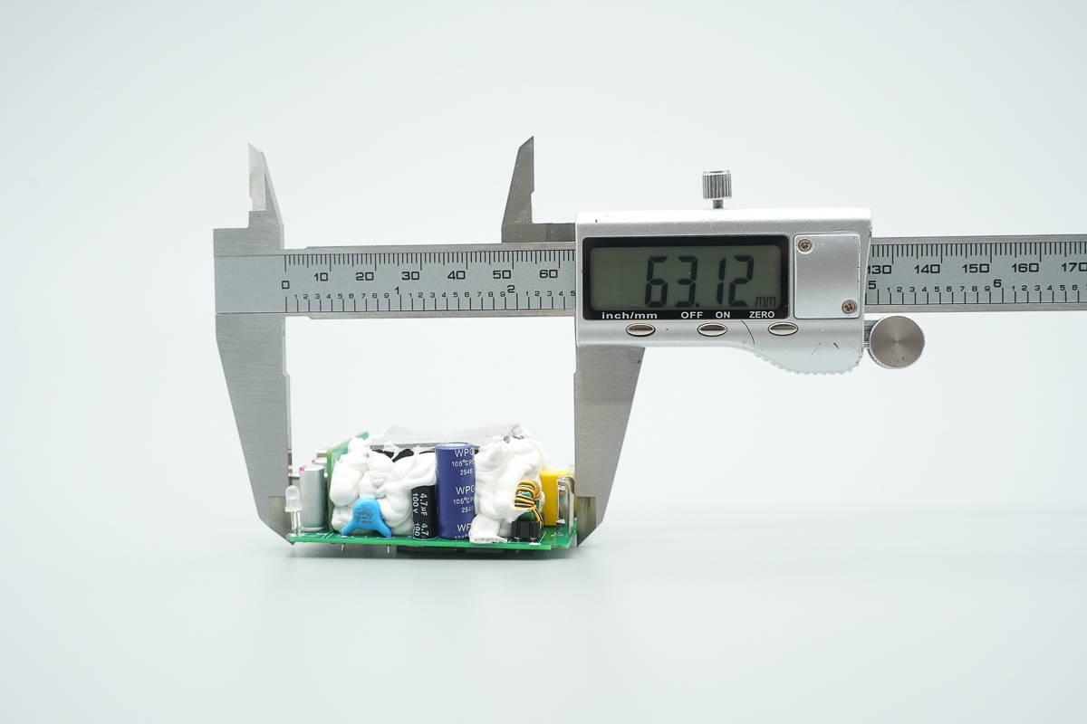 取出PCBA模块,测得其长度为63.12mm。