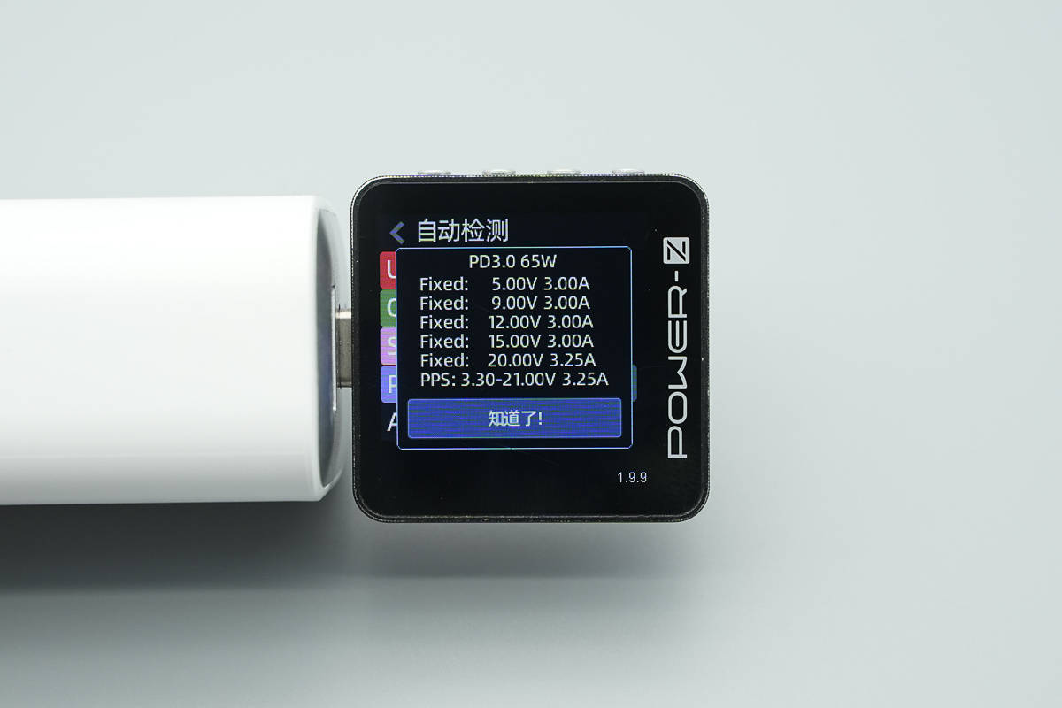 PDO报文显示USB-C口还具备5V3A、9V3A、12V3A、15V3A、20V3.25A五组固定电压档位,以及3.3-21V3.25A一组电压档位。