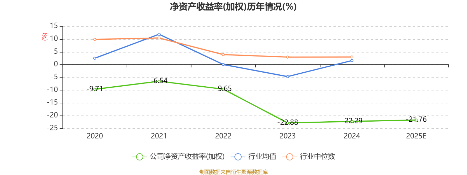 数据显示,2025年公司加权平均净资产收益率为-21.76%,较上年同期上升0.53个百分点。