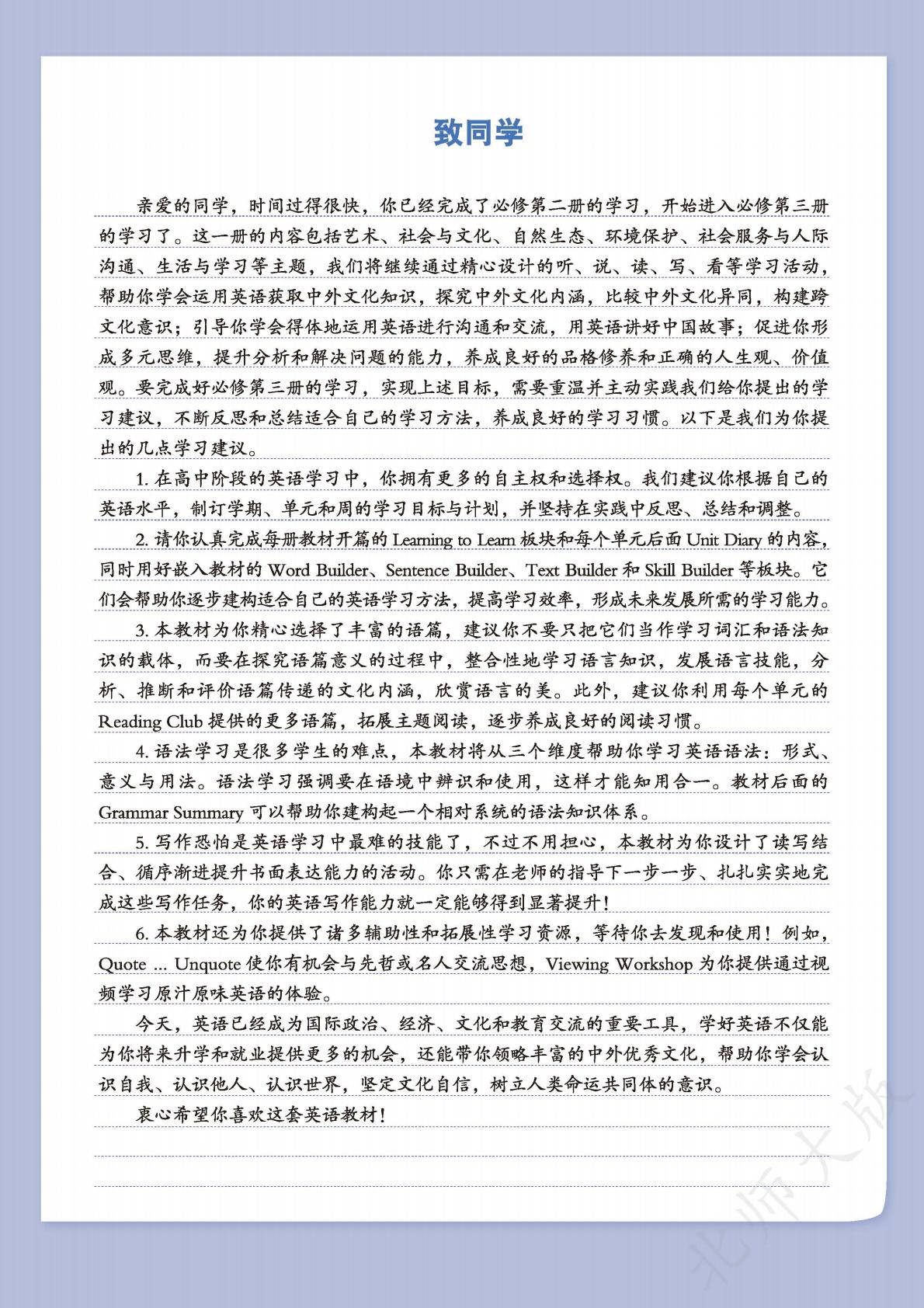 为了让大家做好课前预习和巩固复习,下面为大家准备了2026北师大版高中英语必修三电子课本(高清版),大家可以在线浏览图片版,也可以下载高清PDF版以备不时之需,希望可以帮助到大家。