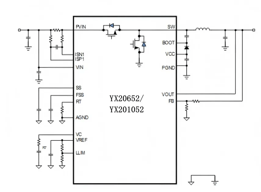 YX20652/YX201052是基于全集成功率MOSFET技术的高性能同步降压转换器。其中,YX20652支持4V至60V的宽输入电压范围,可提供高达10A的输出电流;而YX201052则进一步将输入电压范围拓展至4V–100V,输出电流为5A。两款器件均凭借全集成功率管设计与先进封装工艺,实现了高达97%的转换效率,大幅减少了外围元件数量与PCB布局面积,有助于系统实现更高功率密度与更优整体成本效益。