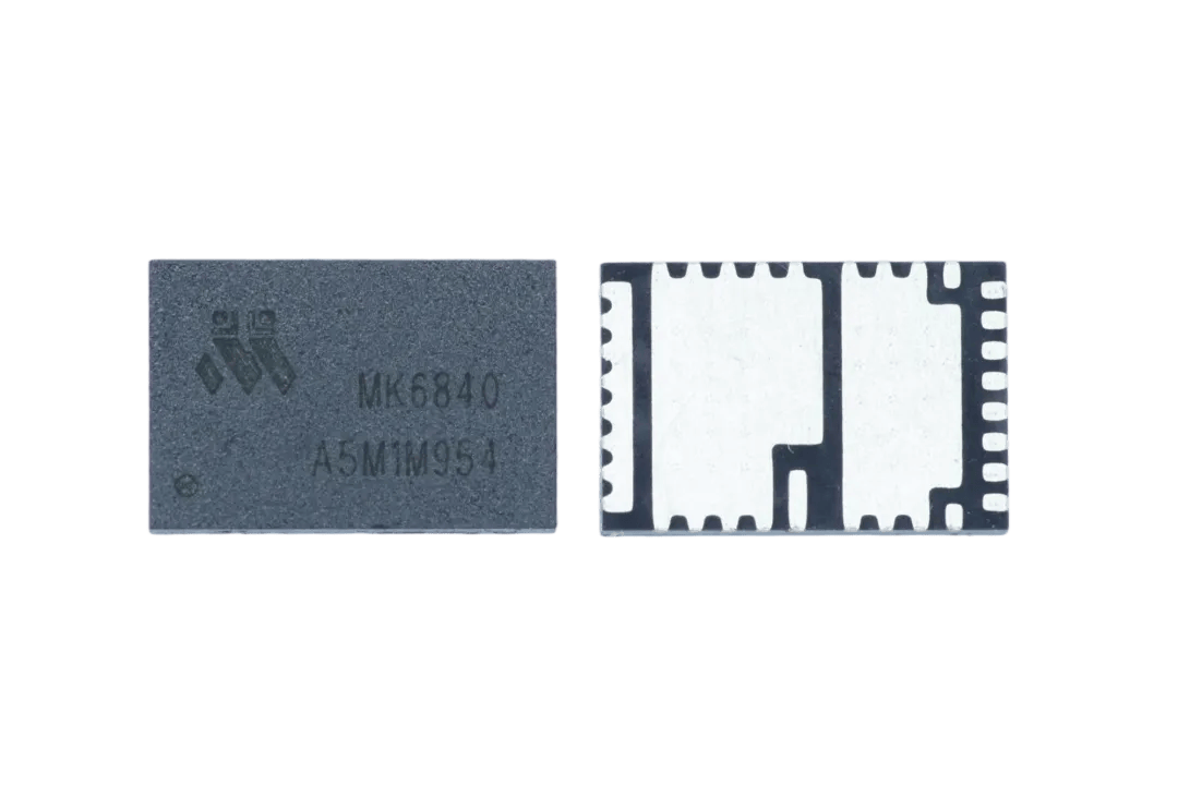 茂睿芯推出新一代智能功率级(SPS)产品MK684X系列(MK6840 & MK6841),这款产品延续多晶圆封装技术,进一步优化了两颗SGT MOSFET的Rdson以追求更高的效率,同时改进了驱动芯片,极大提高了电流上报精度(±3%)。除此之外,MK684X系列采用业界标准的新一代4mmx6mm QFN封装,其主要特征在于更高的功率密度和更紧凑的布局。