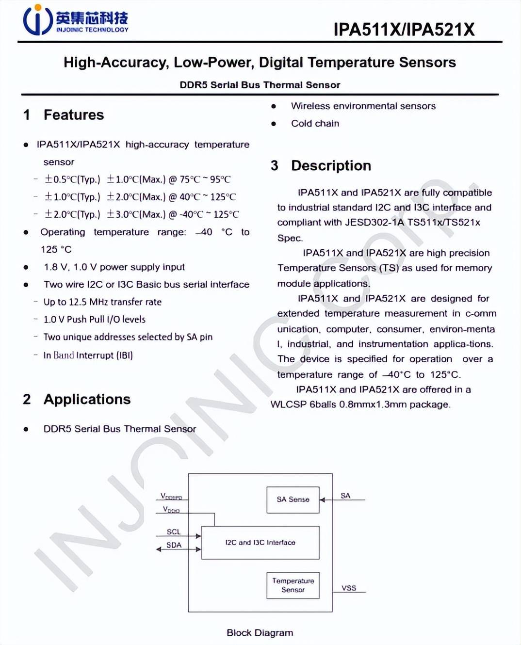 英集芯科技推出IPA511X/IPA521X系列温度传感器芯片,该系列芯片以JESD302-1A标准为基石,为DDR5 模块打造了高精准、高可靠的实时温度监控解决方案。