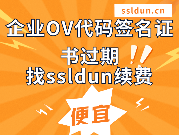 作为Certum、GlobalSign等全球权威CA机构的国内官方授权服务商: 官网 ssldun.cn,其凭借多重优势成为企业OV代码签名证书续费的优选平台。