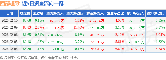 2月10日的资金流向数据方面,主力资金净流入1557.17万元,占总成交额1.52%,游资资金净流入4124.14万元,占总成交额4.03%,散户资金净流出5681.31万元,占总成交额5.55%。