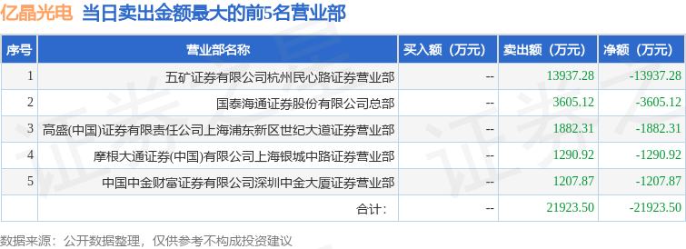 证券之星消息,沪深交易所2026年3月2日公布的交易公开信息显示,亿晶光电(600537)因有价格涨跌幅限制的日收盘价格跌幅偏离值达到7%的前五只证券登上龙虎榜。此次是近5个交易日内第1次上榜。