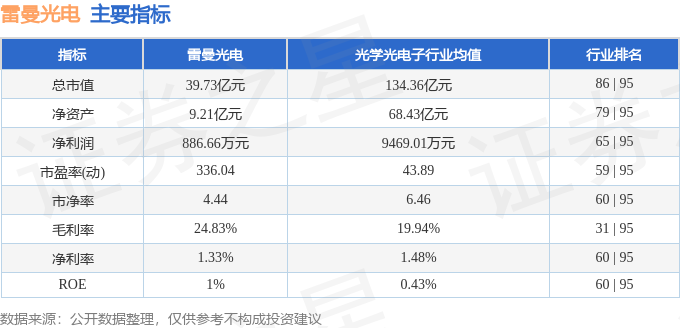 该股主要指标及行业内排名如下: