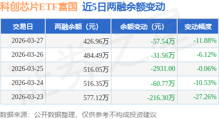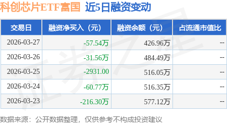 证券之星消息,3月27日,科创芯片ETF富国(588810)融资买入292.69万元,融资偿还350.22万元,融资净卖出57.54万元,融资余额426.96万元。