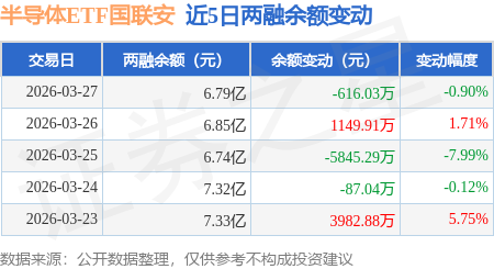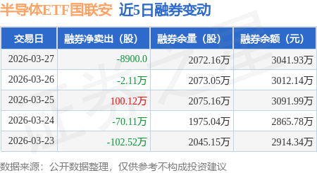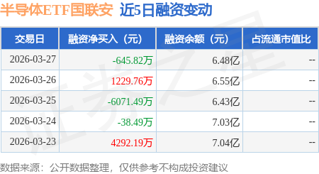 证券之星消息,3月27日,半导体ETF国联安(512480)融资买入9506.67万元,融资偿还1.02亿元,融资净卖出645.82万元,融资余额6.48亿元,近20个交易日中有12个交易日出现融资净买入。